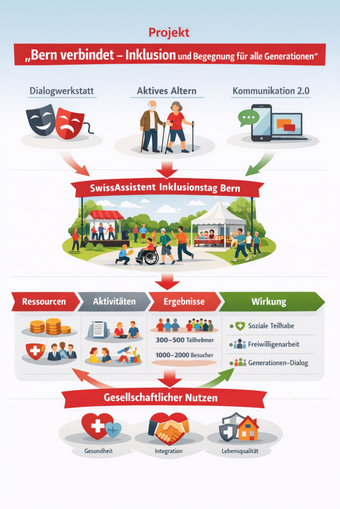 Das Projekt „Bern verbindet – Inklusion und Begegnung für alle Generationen“ schafft im Kanton Bern Räume, in denen Menschen mit und ohne Behinderungen sowie verschiedene Generationen einander begegnen, voneinander lernen und gemeinsam aktiv werden.